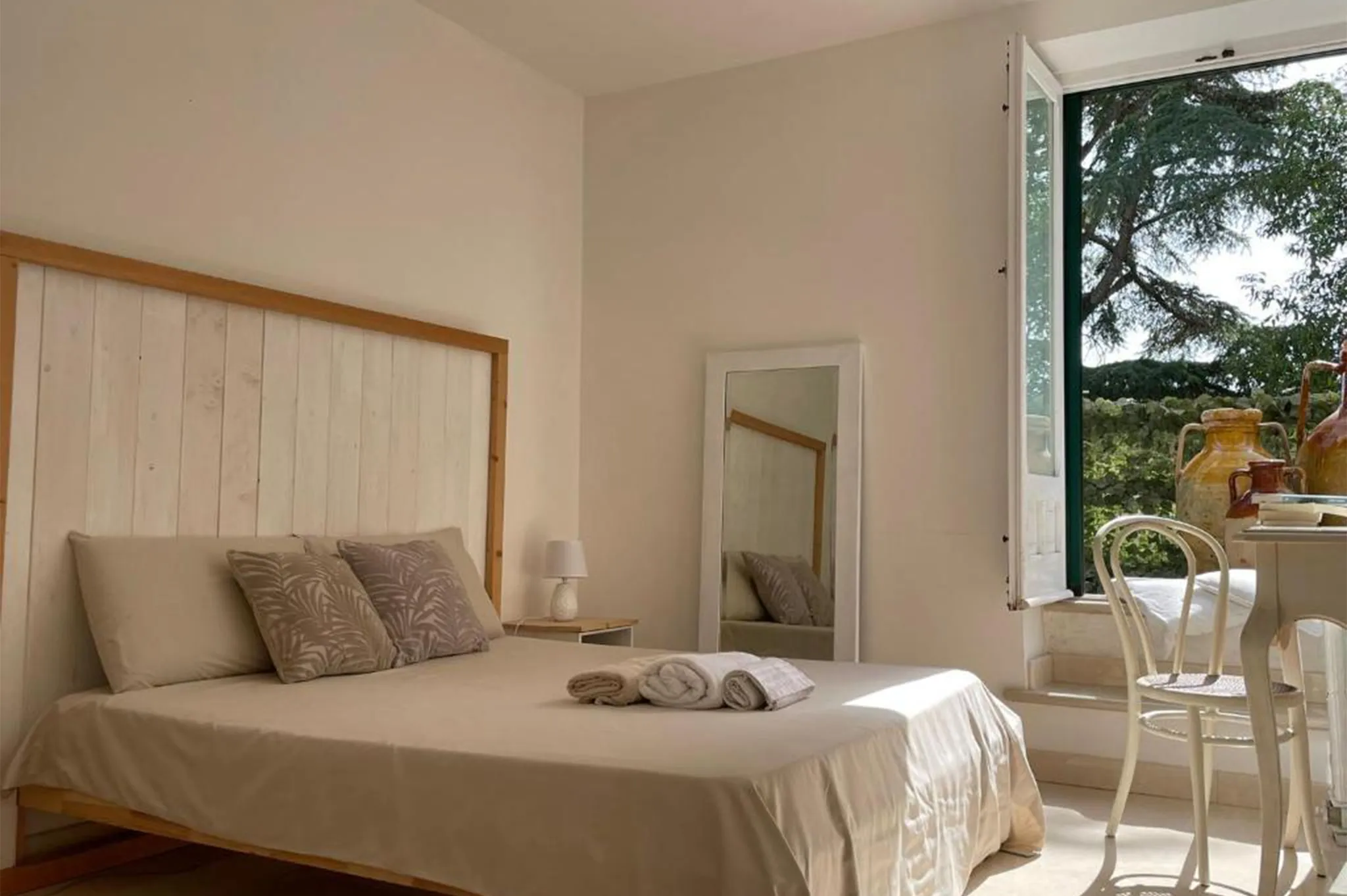 La Masseria presenta una piscina esterna ad acqua salata, sempre pulitissima con valori scrupolosamente e quotidianamente controllati. Adiacenti alla piscina vi sono zone solarium e zone al fresco per ore le più calde del giorno con morbidi lettini, pergole e salotti all'ombra di rigogliose querce e platani. Intima privacy e quiete per amanti del relax e del benessere.